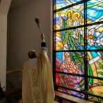 W niedzielne popołudnie zgromadziliśmy się w Sanktuarium Męczeństwa bł. ks. Jerzego Popiełuszki we Włocławku. W tym dniu w czasie uroczystej eucharystii pod przewodnictwem naszego ojca generała Michała Krysztofowicza został poświęcony nowy witraż św. Józefa Pogromcy Duchów Piekielnych. Witraż został wykonany w pobliskim Rypinie w pracowni Państwa Bednarskich, którzy również wzięli udział w tym doniosłym wydarzeniu. Między zaproszonymi gośćmi nie zabrakło  ks. kan. dr Piotra Sierzchały – diecezjalnego konserwatora zabytków, przyjaciół naszego Zgromadzenia, dobrodziejów – dzięki którym udało zrealizować się projekt witraża jak również naszych współbraci, którzy na dzisiejszą uroczystość przybyli z domu generalnego z Marianki, nie zabrakło też braci z domu prowincjalnego.