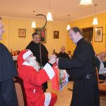 W Wigilię Świąt Bożego Narodzenia zgromadziliśmy się w naszej domowej kaplicy, aby wspólną modlitwą rozpocząć świętowanie i radowanie się bliskością Dzieciątka Jezus. Po modlitwie Liturgią Godzin – Nieszporami, która zakończyła naszą adorację przy śpiewie kolęd udaliśmy się do refektarza, by tam po odczytaniu Ewangelii i wspólnej modlitwie podzielić się opłatkiem i złożyć sobie świąteczne życzenia, a następnie zasiąść do wieczerzy wigilijnej.